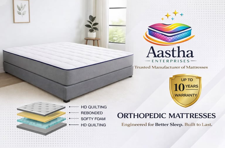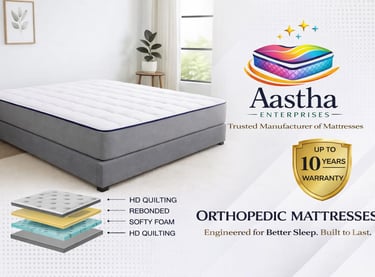 Aastha Enterprises proudly manufactures premium Orthopedic Mattresses under its trusted brand Aastha Care, designed to provide advanced spinal support, pressure relief, and long-lasting comfort.